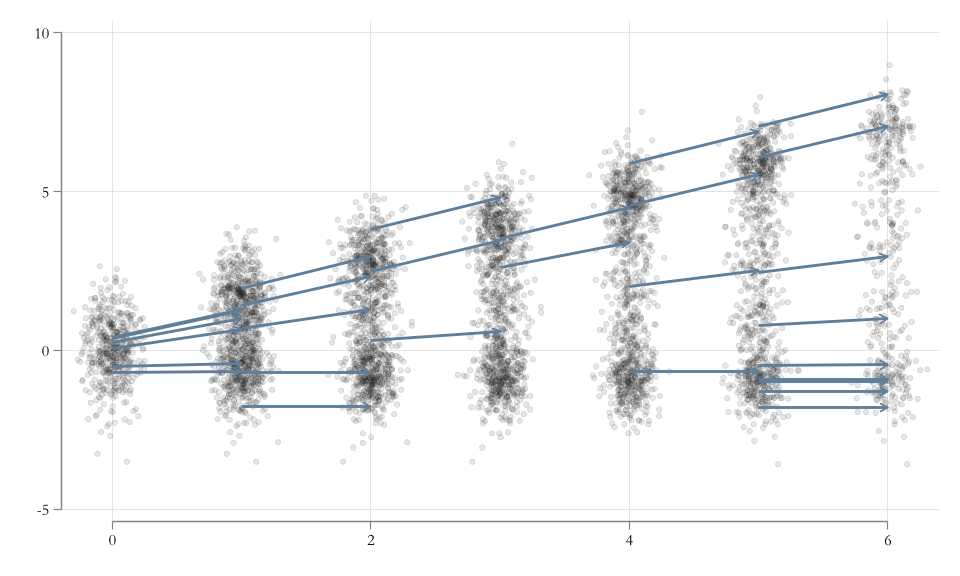 Rank is not fixed: What we see is the effect of a change in \(X\) on the conditional distribution of \(Y\) (measured by the quantile)