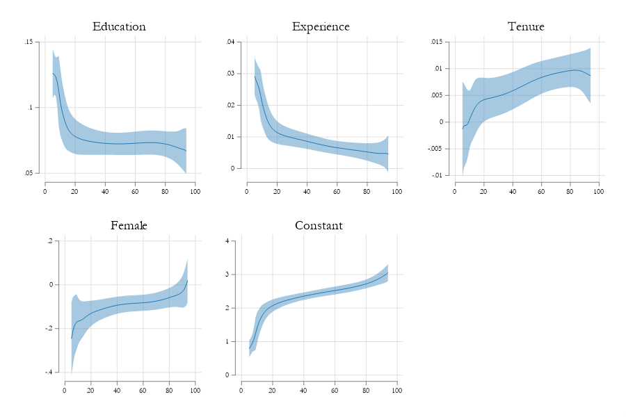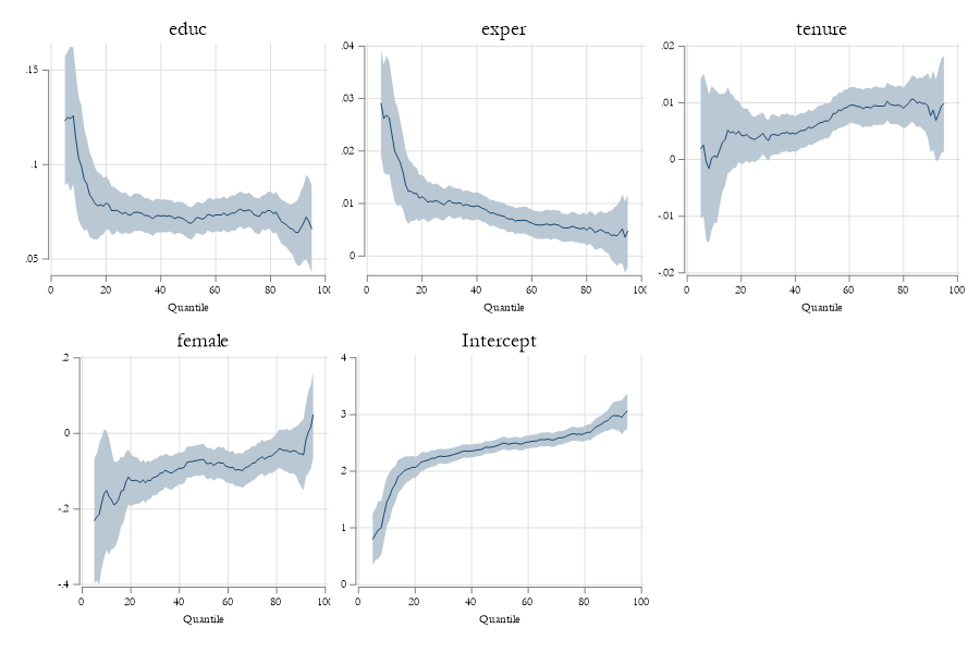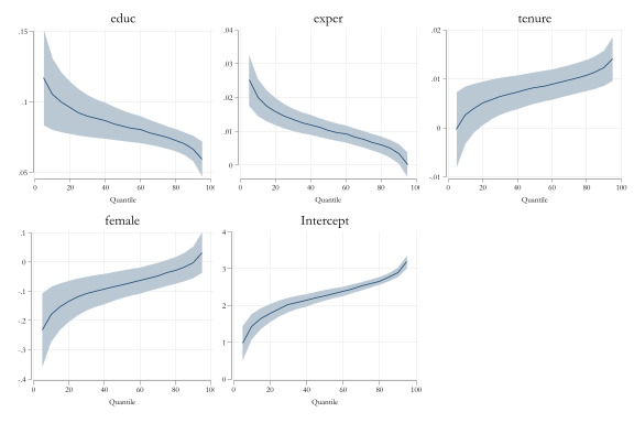 mmqreg)As hinted previously, there are many approaches that can be used for the estimation of Conditional Quantile regressions.