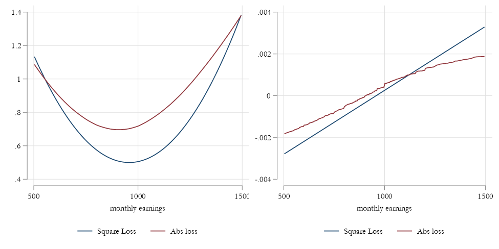 \[ \beta(\tau) = \underset {b}{min} \ N^{-1} \sum \rho_\tau(y_i-X_i'b) \\ \rho_\tau (u) = u (\tau-I(u<0)) \]