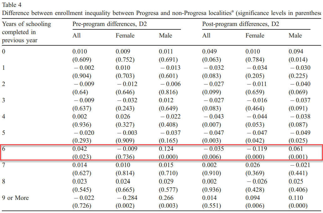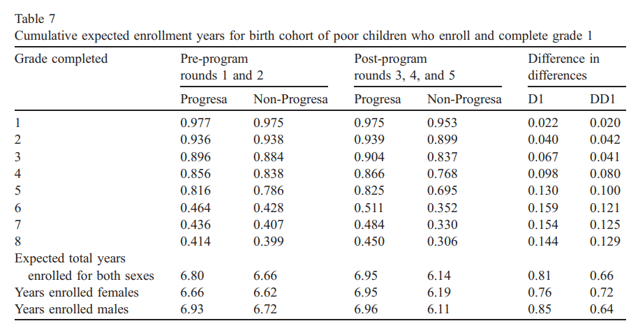 Progresa is a Cash Transfer Program designed to increase School Enrollment among the poor, minimizing desincentives to work.
