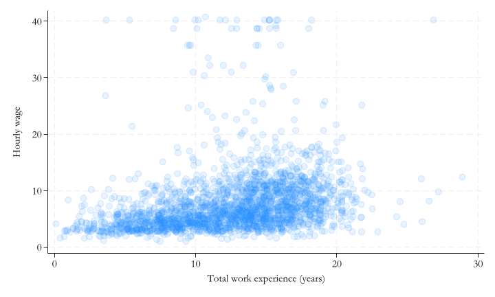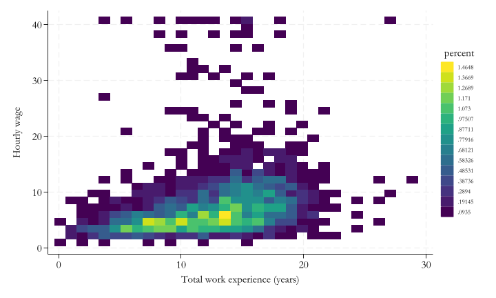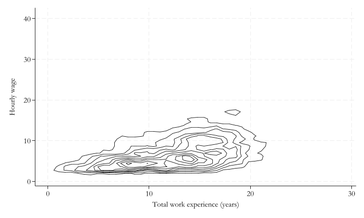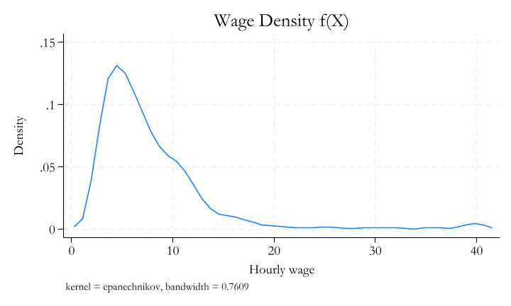 kdensity wage, scale(1.25) title("Wage Density f(X)")