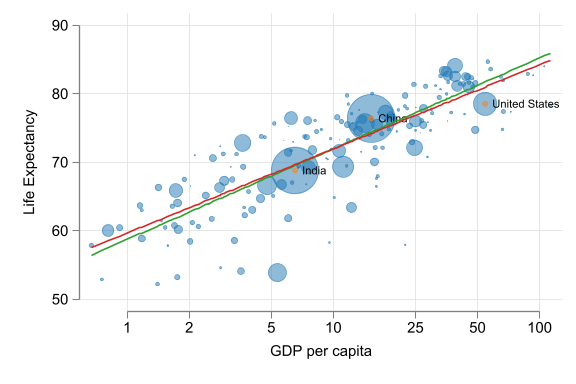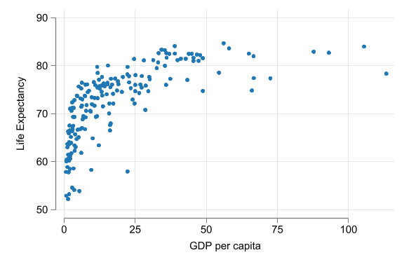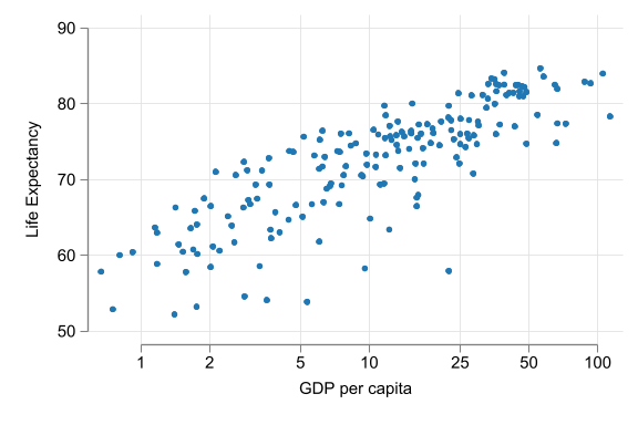 - \(\beta\): \(y\) is \(\beta\) percent higher on average for observations with one percent higher \(x\).