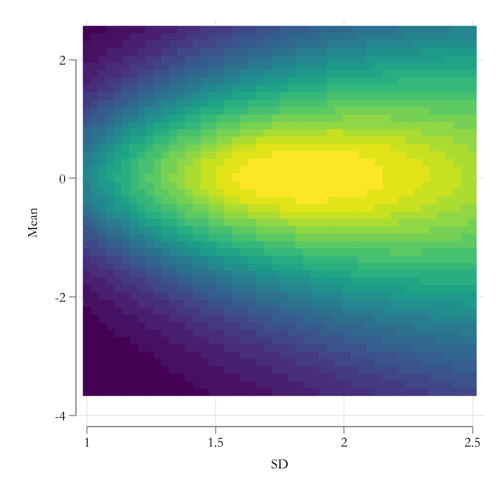 \[L_i(\mu,\sigma) = \frac{1}{\sigma\sqrt{2\pi}} e^{ -\frac{1}{2}\left(\frac{y_i-\mu}{\sigma}\right)^2 }\]