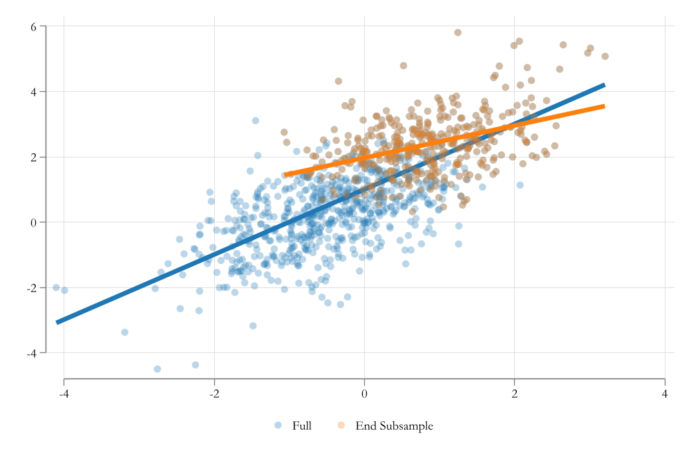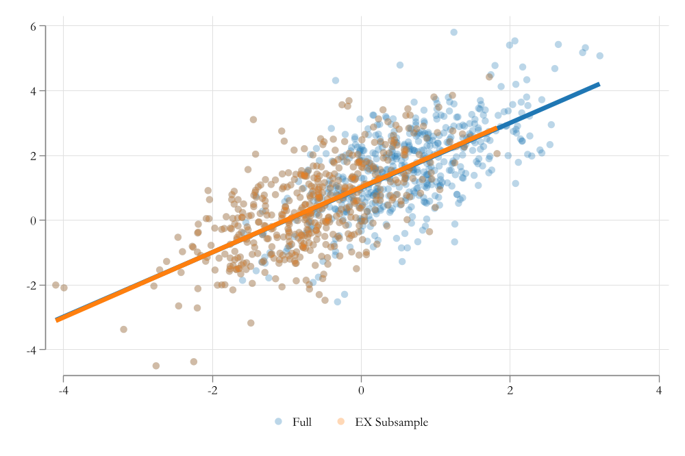 _cons | -.7501284 .7683899 -0.98 0.329 -2.256145 .7558881